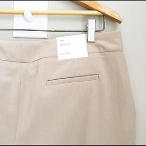 Brand new wide leg dress/career pants with tags. Has two front pockets and two faux back pockets. Light tan color.