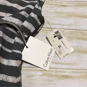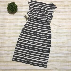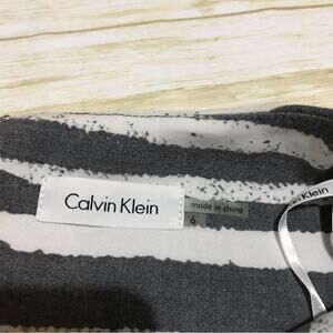 Calvin Klein NWT Gray White Stripe Business Office Cap Sleeve Belted Dress 6