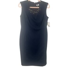 Calvin Klein NWT Navy Blue Sheath Dress with Gold Chain Detail Size 10