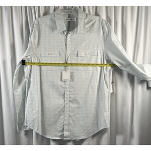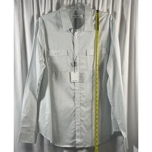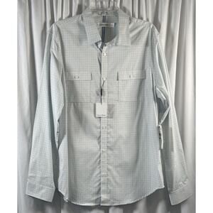 Calvin Klein NWT Plaid Cotton Flap Pocket Shirt White Blue L sustainable 77-16