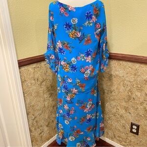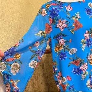 Calvin Klein NWT Set, Top Size Medium, Skirt Size 10, Floral Ruffle, Blue, Semi Sheer, Lined, Flutter Sleeves. New With Tags. Underarm to underarm measures approx 19.75” across. Length of skirt measures approx 28” long. Gorgeous, flowy skirt set.