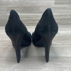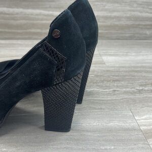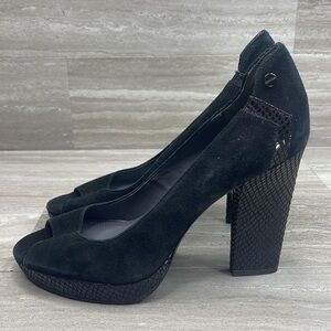 Calvin Klein Narsha Black Suede Peep Toe Faux Snakeskin Heels Womens Size 8