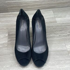 Calvin Klein Narsha Black Suede Peep Toe Heels Womens Size 8