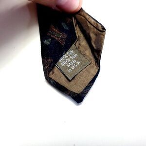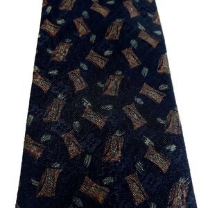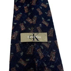 Calvin Klein Navy Blue Brown Jacquard Print Abstract Wide Silk Tie