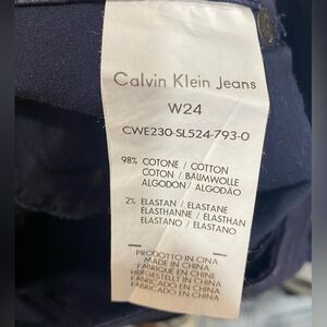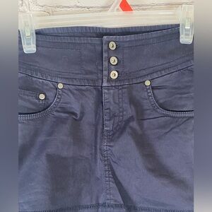 NWOT Calvin Klein Jeans mini skirt size 24 (US equivalent size 0). This is a navy mini skirt with three buttons at the waist. Very cute and modern cut.