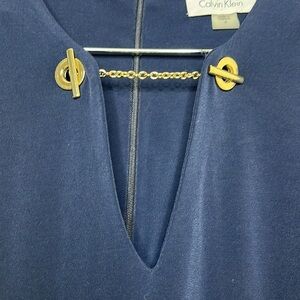 Calvin Klein Navy Gold Chain Sleeveless Shift Dress Women Size 6
