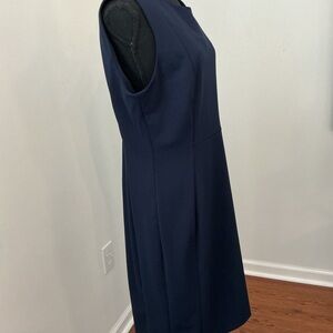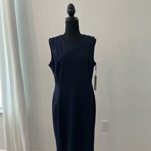 Chic navy midi dress by Calvin Klein. Sleeveless design. Perfect for versatile styling.