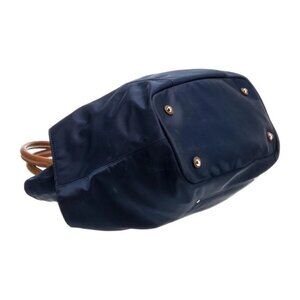 Material & Look: Sleek navy nylon loveseat with refined leather trim and gold-toned hardware.