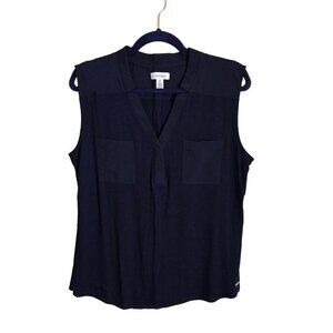 Calvin Klein Navy Sleeveless Blouse Jersey Knit Size M