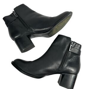 Calvin Klein Neema Heeled Leather Boot Black Womens Size 8.5 Chunky Heel Buckle