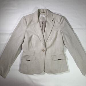 Calvin Klein Neutral Gray Tailored Blazer Size 8 Minimalist Office Chic