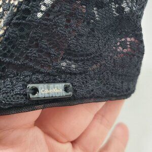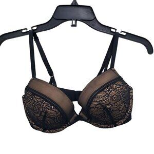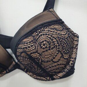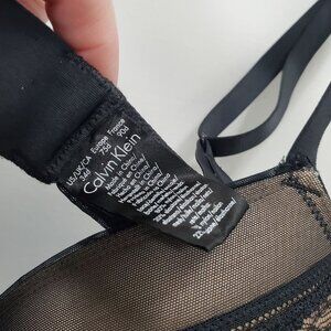 Calvin Klein Nude Black Mesh Lace Plunge Push-Up Underwire Demi Bra Size 34D