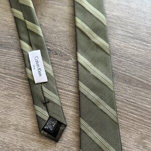 Calvin Klein Olive Green Striped Slim Silk Tie