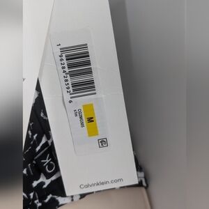 Calvin Klein Abstract Print Logo Strap Infinite Stretch One Piece Swimsuit. Size M. New with tags & sanitary sticker. This monochrome one-piece swimsuit has a scoopneck, lowcut back and logo shoulder straps. Scoopneck. Removable padding. Logo shoulder straps. Lowcut back. Lined. Nylon & spandex.