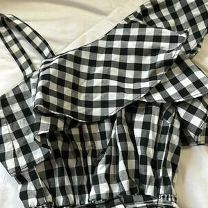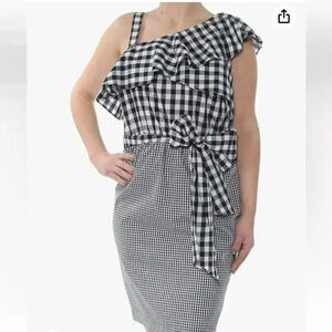 Calvin Klein One Shoulder Ruffle Tie Front Waist Gingham Sheath Dress size 2