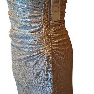 Calvin Klein One-Shoulder Gown with Side Ruching and Beaded Detail -Size 12-NWT