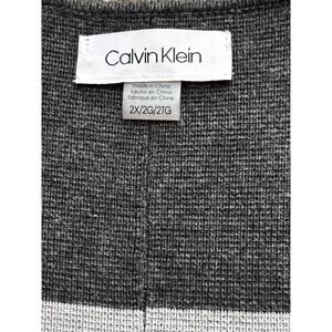 Calvin Klein Open Front Long Cardigan 2X Gray Purple Black Color Block Stripes