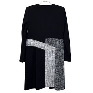 Calvin Klein Open Front Over Coat Jacket Women's Size 10 Black White Fully Lined Long Sleeve Round Neck