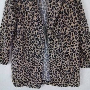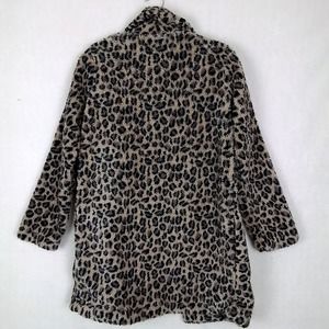 Calvin Klein Open Front Plush Sherpa Shacket Size Small w/ Leopard Print