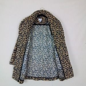 Calvin Klein Open Front Plush Sherpa Fleece Jacket Size Small w/ Leopard Print