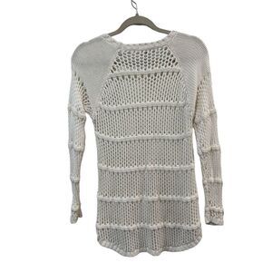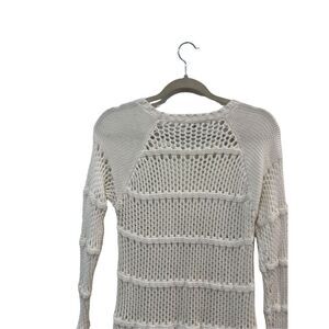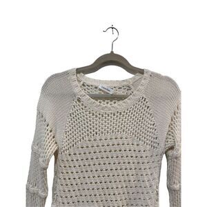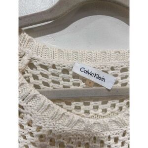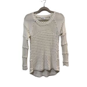 Calvin Klein Open-Knit Sheer High Low Long Sleeve Pullover Sweater White Small