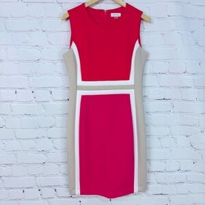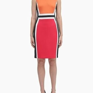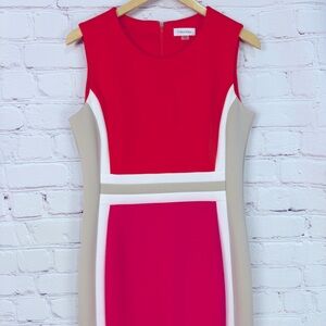 Calvin Klein Orange Cream pink color block Sleeveless Sheath Mini Dress size 12