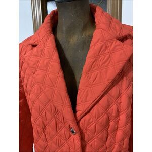 Calvin Klein Orange Diamond Quilted Coat Jacket Large Snaps Pocket Collar