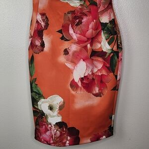 Calvin Klein Orange Floral Scuba Knit Sleeveless Cocktail Dress Size 4