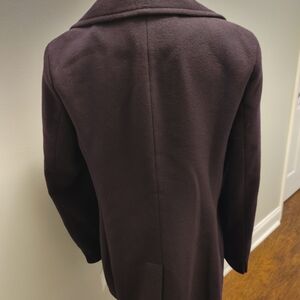 NWT. Size 14. Beautiful deep plum color. Single breasted. Classic design. Notched collar and 2 slant front pockets. Inside slip pockets. Excellent new condition. PTP 22" x 31" L.