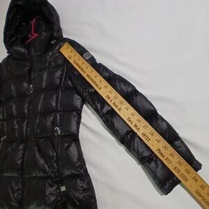 Stay warm and stylish with this Calvin Klein packable, lightweight, premium down puffer coat. In fabulous, nearly unworn condition, this long, black quilted coat is perfect for those chilly days.