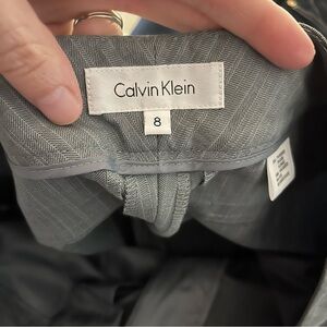 DETIALS: Calvin Klein Pants size 8, gray with subtle herringbone design & vertical stripe. Straight leg. Poly rayon spandex, machine wash.