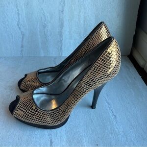 Calvin Klein Pari Bronze/Gold Reptile Pumps Peep Toe 5.5