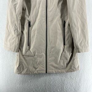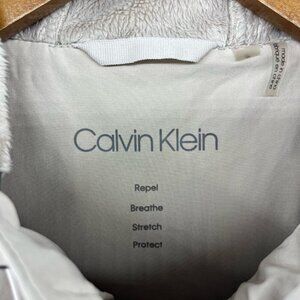 Calvin Klein Parka Jacket Women's S Beige Full Zip Faux Fur Lined Hooded Pocket