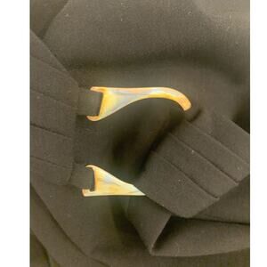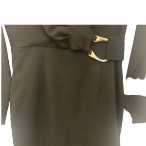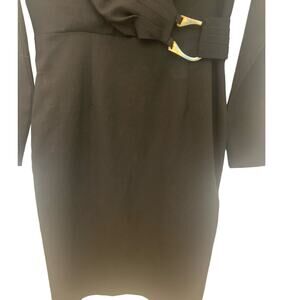 Calvin Klein Size 8 Faux Wrap V Neck Sheath Cocktail Dress Black Silver Buckle