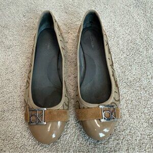 Calvin Klein Paulett camel Tan brown monogram logo patent canvas ballet flats 9