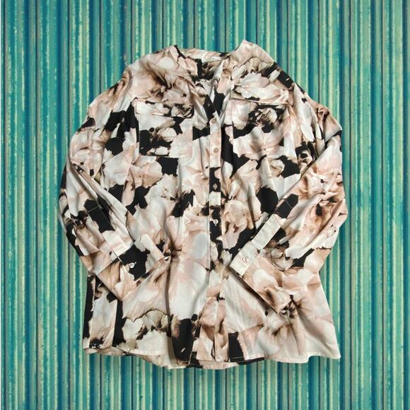 Calvin Klein Peach Black Floral Button Down Shirt Size 1X