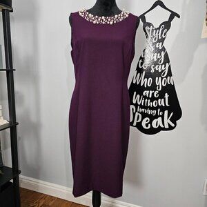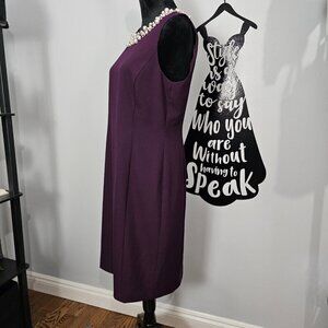 Calvin Klein Pearl Neck Sleeveless Plum Sheath Dress Size 12