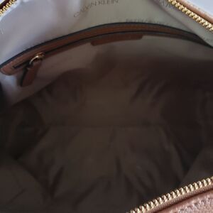 Calvin Klein Faux Vegan Leather Ivy Novelty Hobo Satchel in Caramel