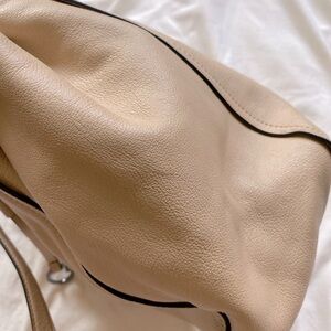 Calvin Klein Pebbled Leather Shoulder Tote Bag – Beige