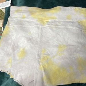 NWT, drawstring shorts, raw hem, pockets and logo.