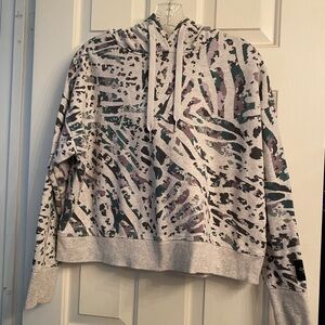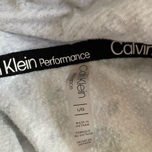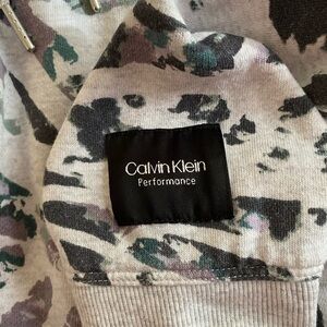 Calvin Klein performance printed hoodie. Gray and green. Excellent preowned condition. No rips, stains or tears. Large