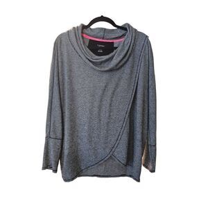 Calvin Klein Performance Cowl Neck Front Wrap Black White Striped Sweater Soft C