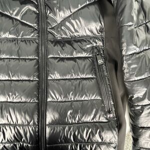 Calvin Klein Performance Mixed-Media Quilted Puffer Jacket Coat Black Size M