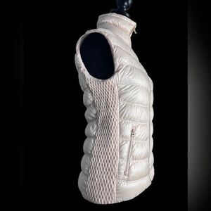 Beautiful used condition. Pale almost pearl pink in color. Very warm, down filled. No tears or stains. Two front zipper pockets.
