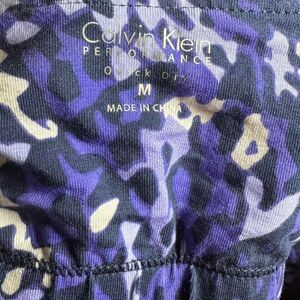 Calvin Klein Performance Quick Dry Purple & White Pattern Top Criss Cross Straps Size Med NWT. Stylish and functional athletic top featuring a breathable quick-dry fabric and strappy back detail for a flattering fit. New with tags, wash to wear.