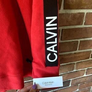 Calvin Klein Performance Quarter Zip Fleece Pullover Red Black 2X