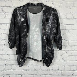 Calvin Klein Performance Quick Dry Full Zip Compression Athletic Exercise Workout Jacket Top, Size Large, Black Tree Line Abstract Print Pattern Color, 91% Nylon/9% Spandex