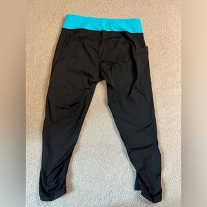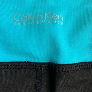 Calvin Klein Performance Quick Dry Yoga Jogger Workout Pants Black medium. Black and turquoise with pockets and ruching on leg.