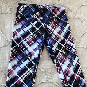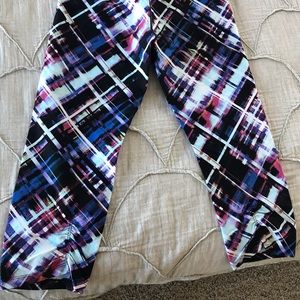 So cute! Gorgeous bright colors, ruched detail at back of waist and back calf area. Regular rise, capri length. Size medium. Worn only a few times, in great condition
