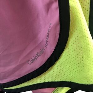 Calvin Klein Performance Shorts Women L Pink Green Mesh Liner Elastic Waist